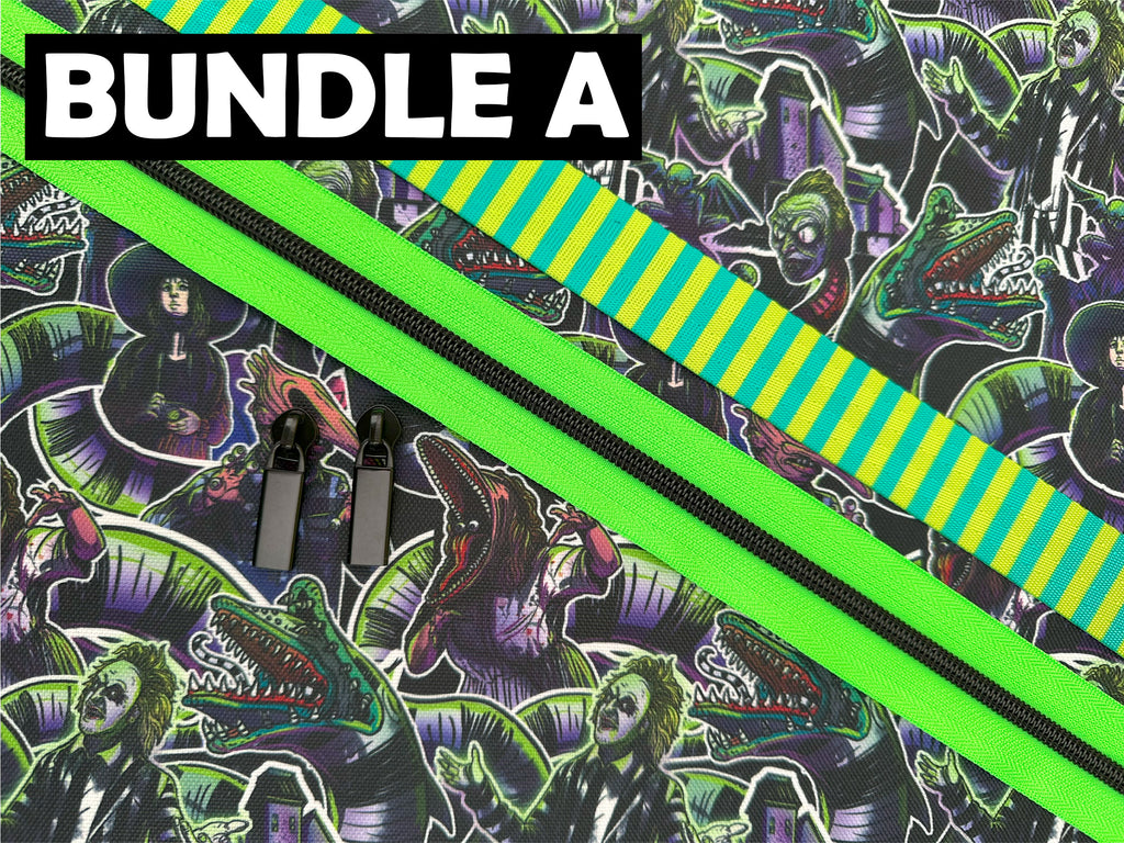 Beetle Town Worms, Small scale/Green Stripes, Waterproof Polyester Canvas Bundle
